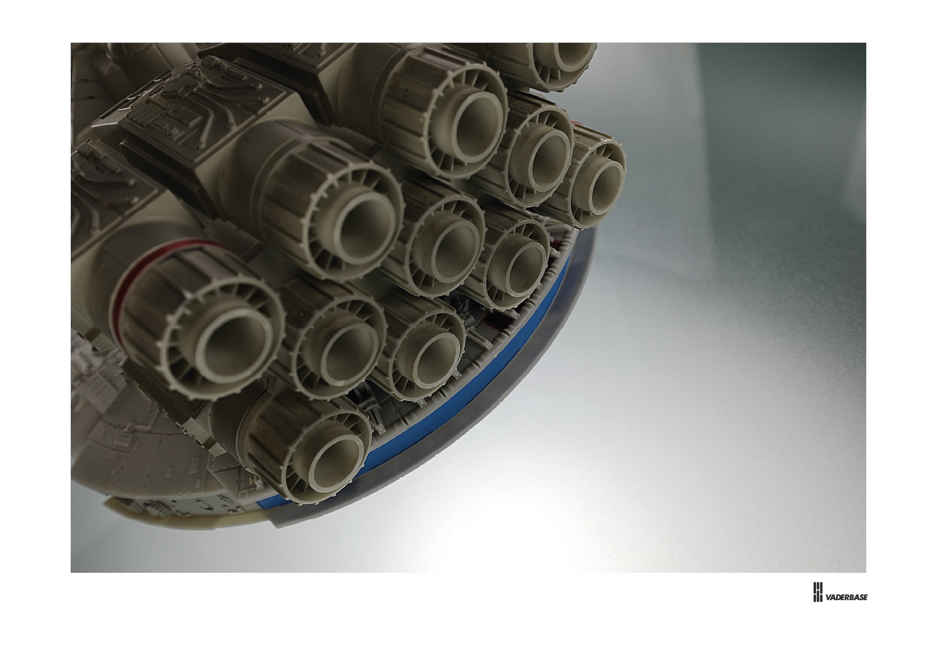 Ein letztes Detail noch: der "mechanische Wasserskorpion" wurde natürlich auch nicht nur einfach zufällig erschaffen von den Modellbauern aus beliebigen Teilen gerade zur Verfügung stehender Bausätze anderer Modelle ("kitbashing"), sondern er wurde anhand des detaillierten Plans der Discovery von Herrn Hans-Kurt Lange erstellt. Die Vektorschubdüsen wurden in Form, Anzahl und Abstand natürlich auch exakt so erstellt. Selbst die runden Ventilationsöffnungen und die rechteckigen Strukturen vor den hintern drei Abdeckungen (die aus dem Panzermodell "Panzerkampfwagen V Panther, Sd.kfz 171, Ausf. A, Tamiya, No. 35065, 1:35 stammen. Die Querstangen sind vom Yardley McLaren M23, Ford, 1974, Tamiya, No. 12017, 1:12) sind en détail aus dem Plan heraus belegt.